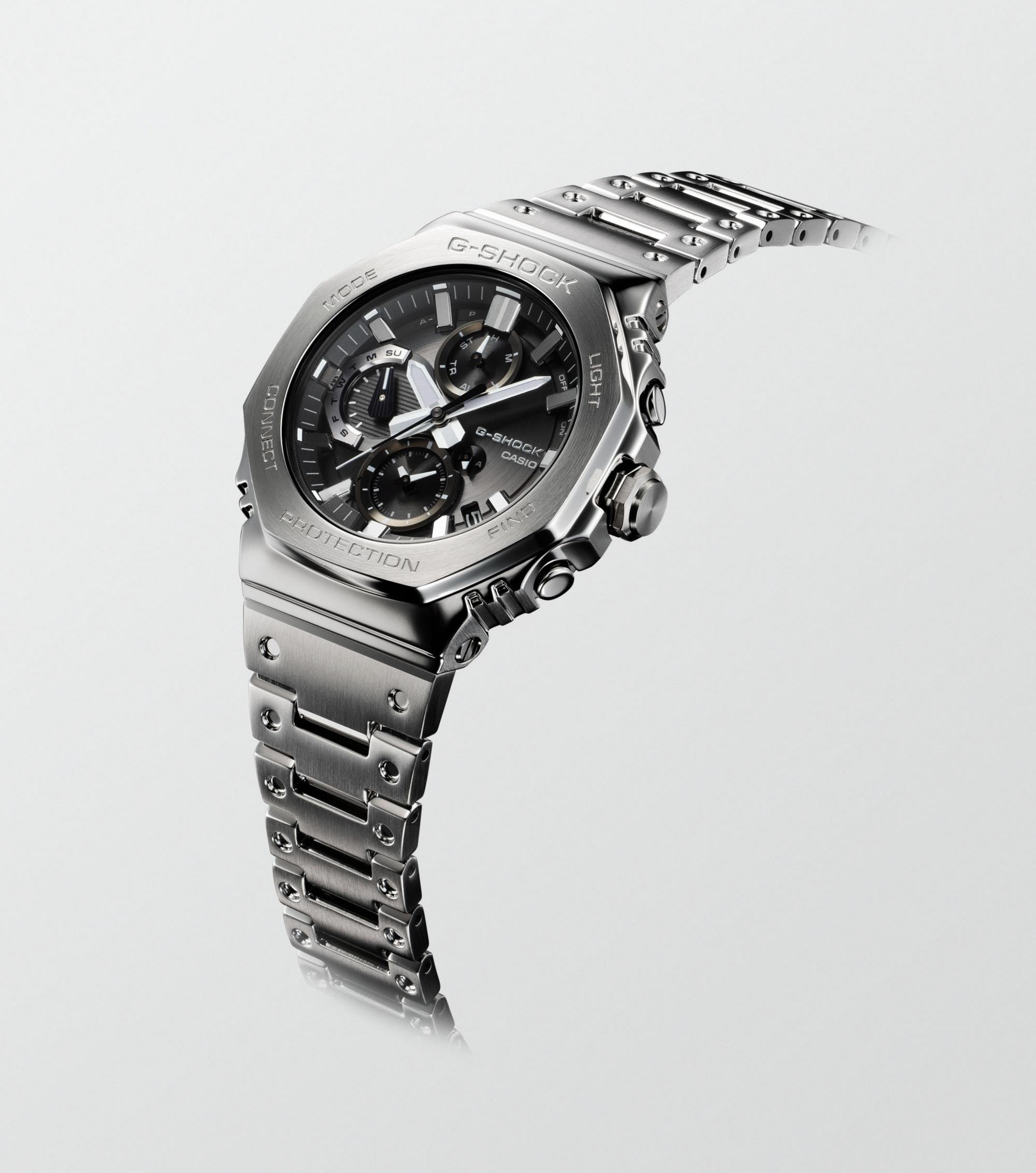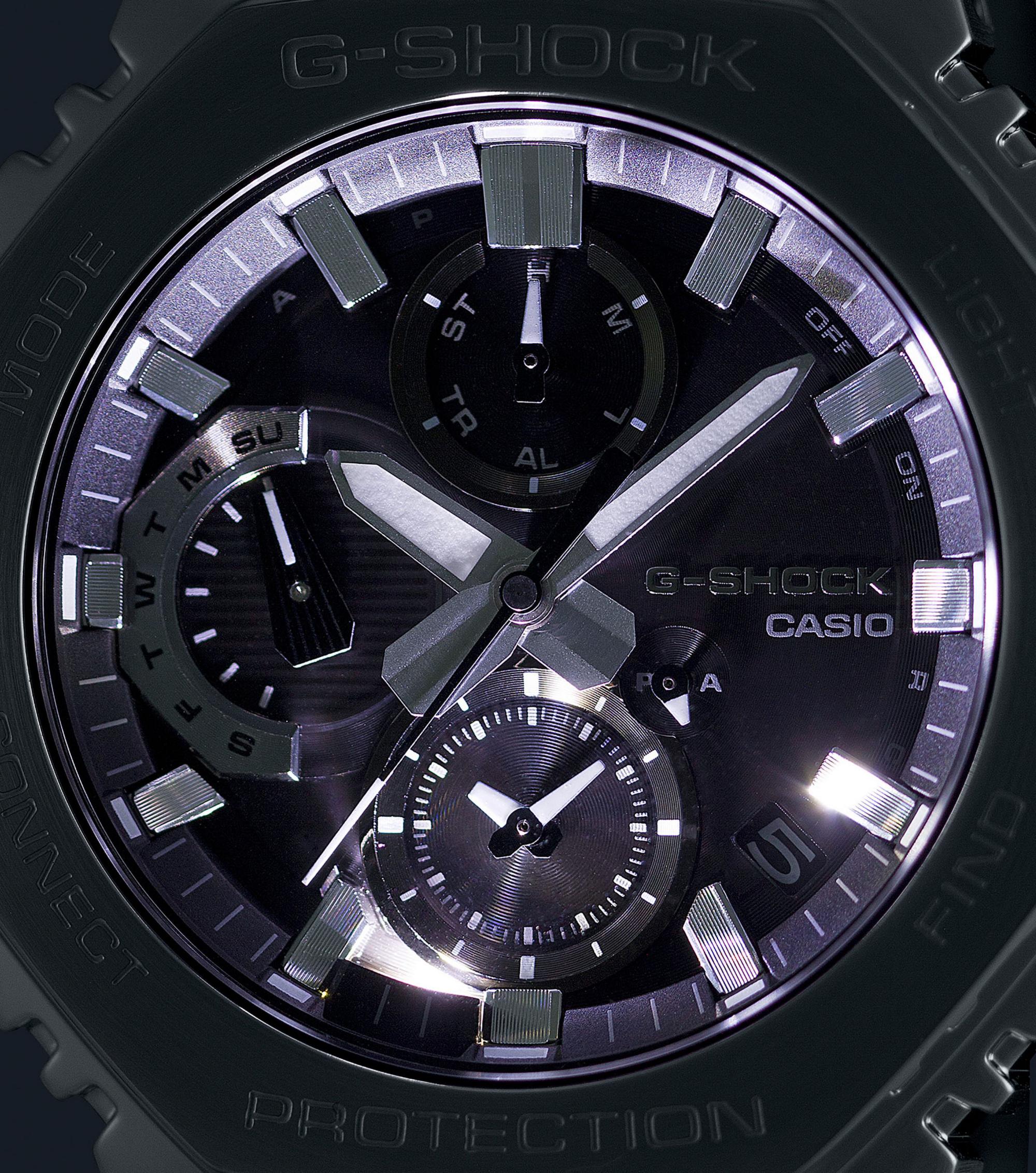 Entdecken Sie die Vollmetallserie GMC-B2100 – ganz aus Stahl und mit einem markanten schwarzen Zifferblatt. Der G-SHOCK Chronograph GMC-B2100D-1AER vereint Stil und Funktionalität.