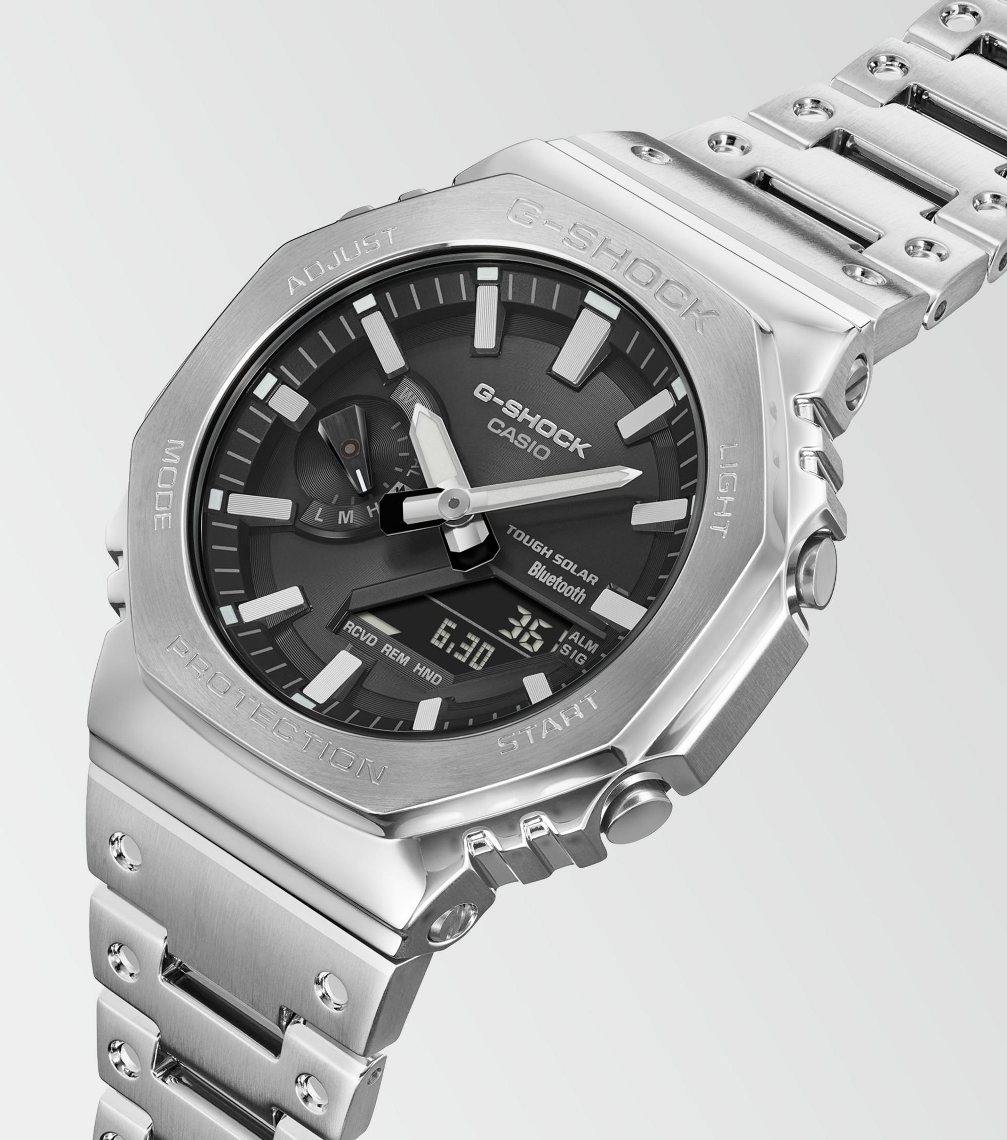 Wir stellen vor: Die GM-B2100SD-1AER – die Weiterentwicklung der sich ständig weiterentwickelnden 2100-Serie, die ihren Ursprung in der allerersten G‑SHOCK, der DW‑5000C, hat. Diese Uhr kombiniert das ikonische, klassische Design mit modernster Technologie und edler Vollmetallkonstruktion.